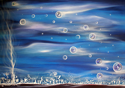 Mikro ya da makro, evrendeki her küre bir baska yasam, bir sir sakliyor içinde. Atomun çekirdegi, dünyamiz, günes, kanimizdaki alyuvarlarlar, akyuvarlarlar… Içinde var olabildigimiz, kendi küçük gezegenlerimizi yaratip yasadigimiz küreler… Bizim için önemli, bizi kavrayan, kavradiklarimizi koruyan, kendi içimizde tüm ve bütün kalabilmemizi saglayan küreler. Sanatçinin “Bubbles” resim serisinin çikis sebebini olusturmuslar…