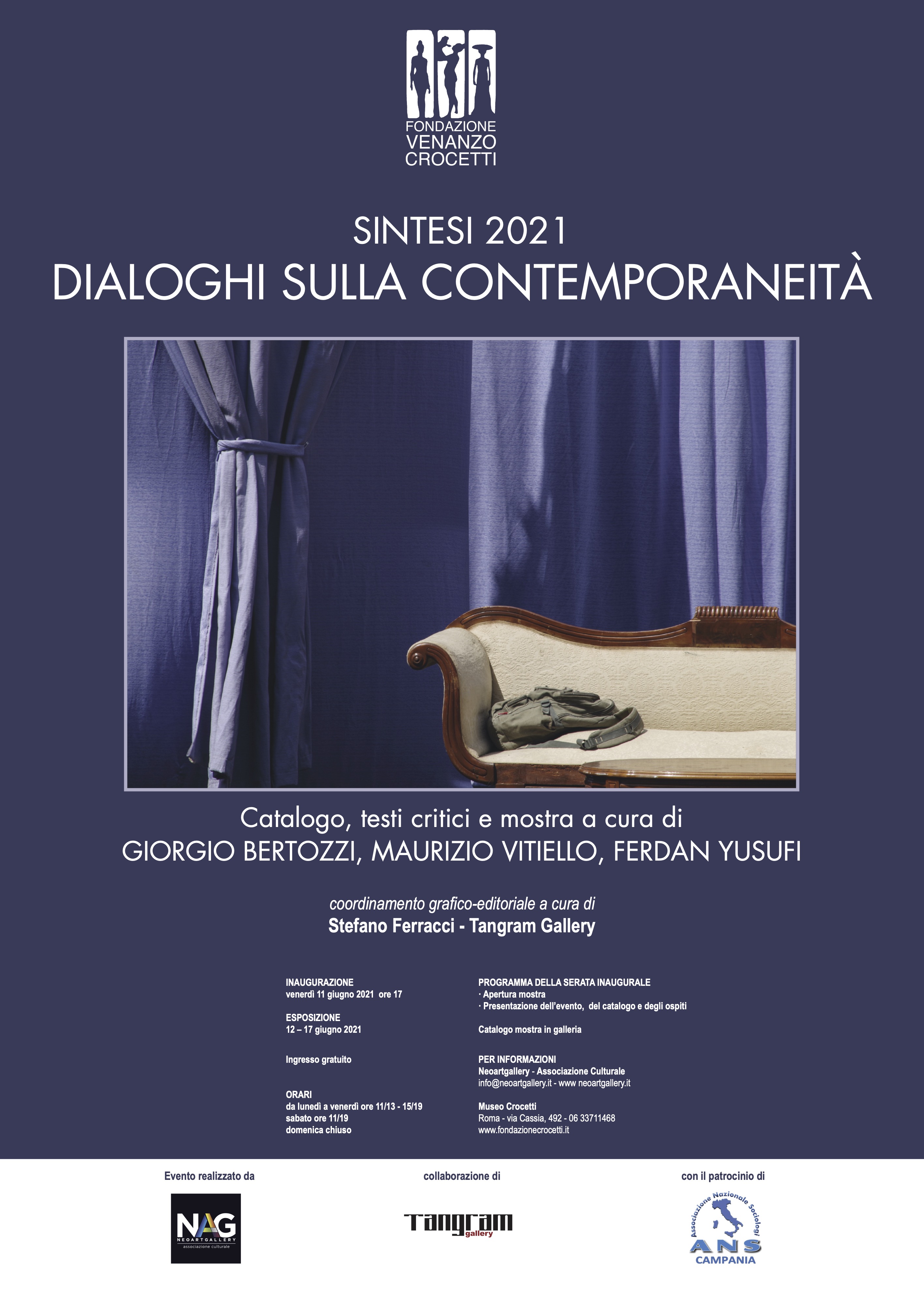 Il museo Venanzo Crocetti di Roma presenta SINTESI 2021 Dialoghi sulla Contemporaneità Catalogo, Testi Critici e Mostra a cura di: Giorgio Bertozzi, Maurizio Vitiello, Ferdan Yusufi. L’evento è realizzato da: Neoartgallery associazione culturale.